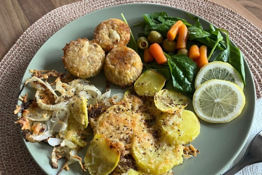 Takže tu je pre vás recept na Tuniakové guľky (fašírky) bez vyprážania v silikónových košíčkoch, doplnené o fantastickú a rýchlu Zapečenú prílohu a sviežu oblohu. Je to skvelý tip na zdravý obed alebo rýchlu večeru s minimom námahy a maximom chuti!